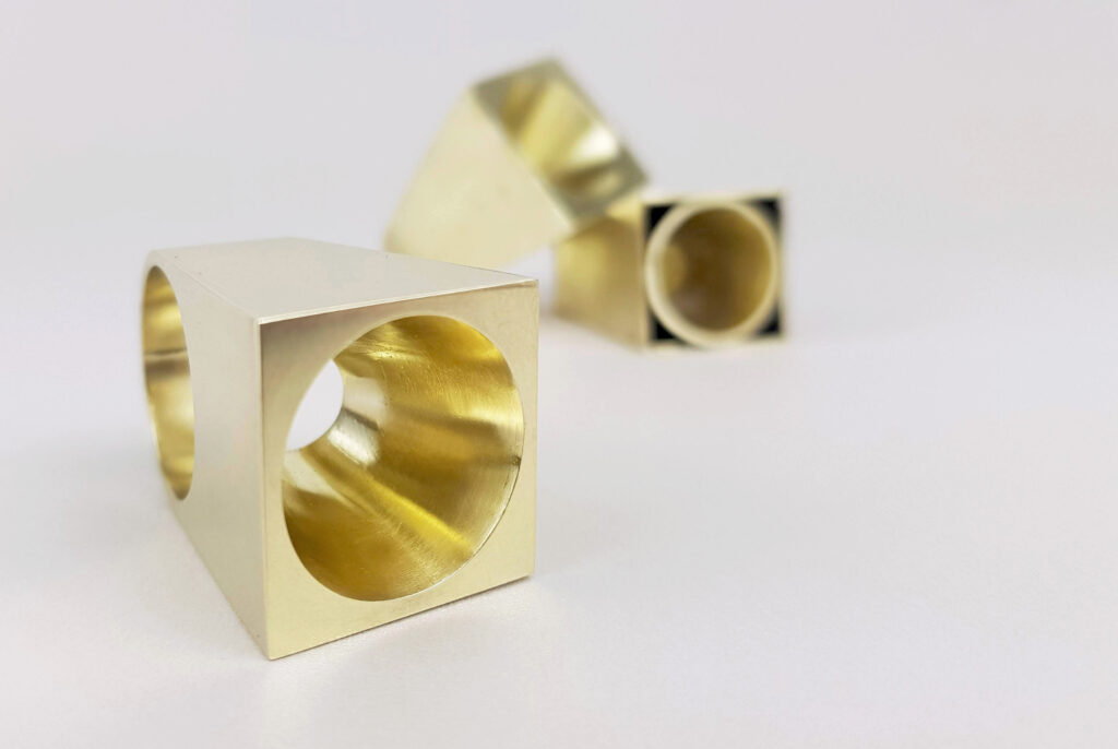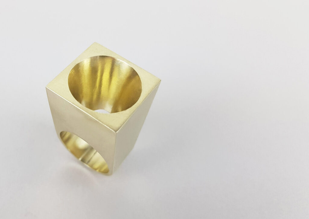 dobozolt gyűrű A dobozolás technikája a végletekig – a két ellentétes irányú átnyitás kialakítása igazi kihívás volt. boxed ring This boxed ring is an example of taking a technique to the edge – the execution of the two openings was a nice challenge.